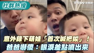 意外錄下萌娃「首次喊把拔」!爸爸嚇傻:眼淚差點噴出來