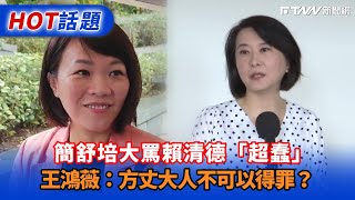 簡舒培大罵賴清德「超蠢」 王鴻薇:方丈大人不可以得罪?