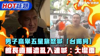 男子高舉五星旗怒喊「台獨狗」!館長直播遭亂入連喊:大場面