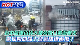 台中氣爆百貨大樓旁路口畫面曝光! 驚悚瞬間騎士竄逃險遭砸傷!