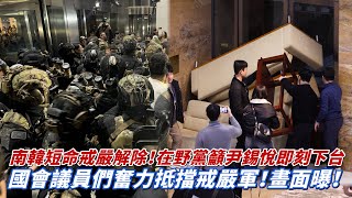 南韓短命戒嚴解除! 在野黨籲尹錫悅即刻下台 國會議員們奮力抵擋戒嚴軍! 畫面曝!