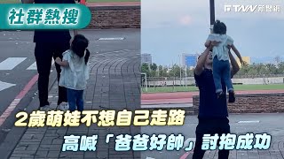 2歲萌娃不想自己走路 高喊「爸爸好帥」討抱成功