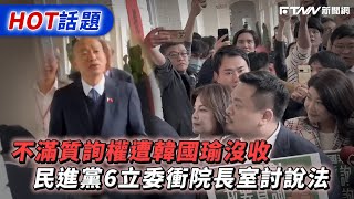 不滿質詢權遭韓國瑜沒收 民進黨6立委衝院長室討說法