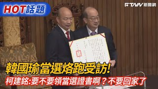韓國瑜當選烙跑受訪! 柯建銘:要不要領當選證書啊?不要回家了