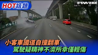 小客車國道自撞翻車 駕駛疑精神不濟所幸僅輕傷