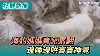 海豹媽媽育兒累翻 邊睡邊哄寶寶睡覺