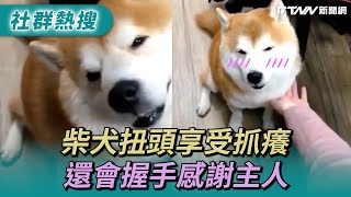 柴犬扭頭享受抓癢 還會握手感謝主人
