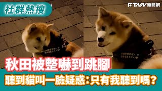秋田被整嚇到跳腳 聽到貓叫一臉疑惑:只有我聽到嗎?