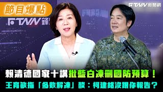 賴清德批藍白凍刪國防預算!王育敏指「多數解凍」酸:柯建銘沒跟你報告?